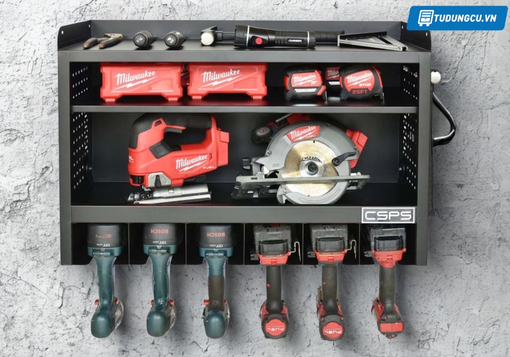 - Ngành xây dựng – sửa chữa: Lưu trữ dụng cụ cầm tay, máy khoan pin, vít, ốc, giúp tăng năng suất công việc.