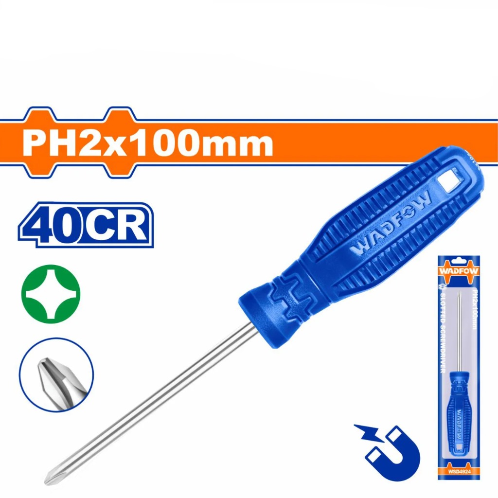 Với đội ngũ kỹ sư chuyên nghiệp và đam mê, WadFow đã tự hào giới thiệu sản phẩm Tua vít PH2x100mm WSD4924. Được thiết kế đặc biệt từ vật liệu cao cấp 40CR và đánh bóng kỹ lưỡng, sản phẩm này tỏ ra là một trợ thủ hoàn hảo cho các tác vụ bắt vít trong công việc xây dựng, sửa chữa và lắp đặt.